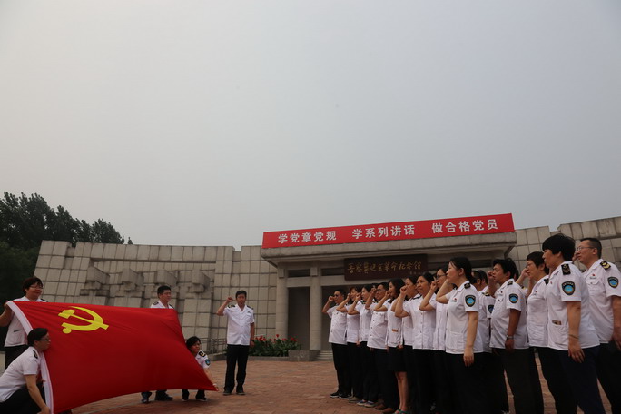 纪念馆内,党员们在鲜红的党旗下重温入党誓词。共同感悟中国共产党95年的光辉历程,加深对党的性质、宗旨和荣辱观的认识,进一步提高了广大党员对开展“两学一做”学习教育重要性的认识。大家纷纷表示,要继承和发扬老一辈无产阶级革命家的优良传统,充分发挥共产党员先锋模范作用,立足本职、踏实工作,开拓创新、团结奋进,发挥党员模范带头作用,为我局的建设与发展做出新贡献。