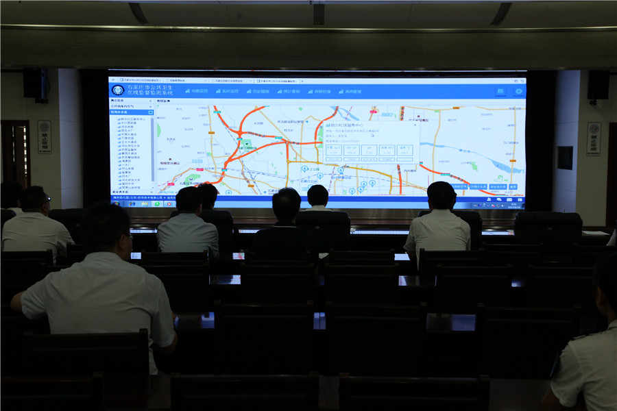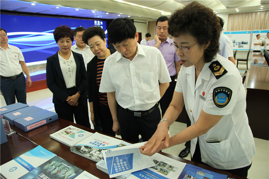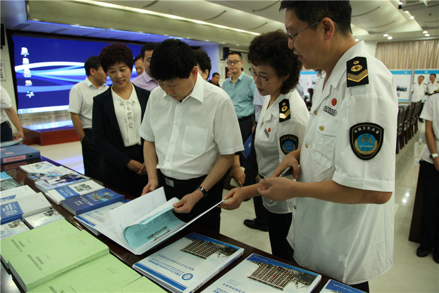 在11楼,市委书记邢国辉一行察看了行政执法在线监测平台,指出要进一步优化监管模式,提升执法效能,要将标准化管理和执法实际工作结合起来,确保扎实落地。邢国辉还高兴地说石家庄市卫生监督局局的卫生计生监督工作跻身全国第一方阵的目标非常好,要继续保持。要进一步优化监管模式,提升执法效能,维护好老百姓的身体健康和生命安全。