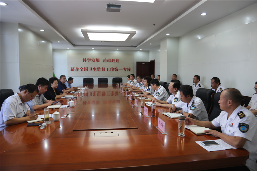 2017年9月8日下午,市卫生计生委党组书记、主任王华平到市卫生监督局调研工作。市卫生计生委纪检书记张国勇、中医药管理局局长施文国、法监处处长邢志宏、家庭发展处处长李永刚陪同参加调研。市卫生监督局领导班子和中层正职参加调研座谈会。